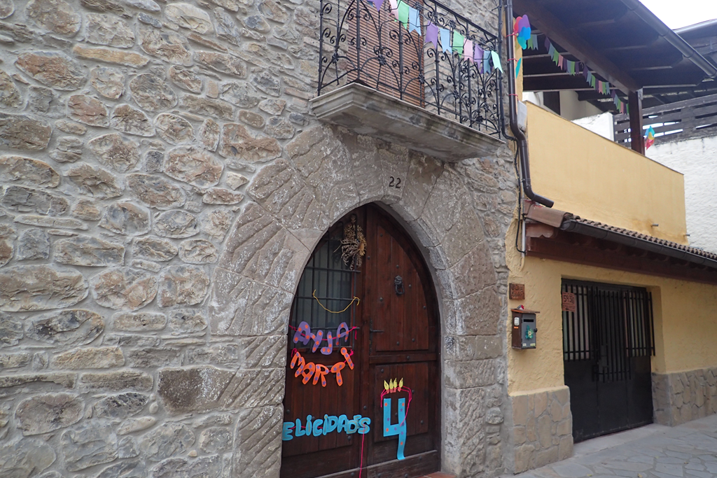 https://dosperegrinos.net/2018/11/15/tercera-peregrinacin-22%ef%bc%8811-14-santa-cillia%ef%bd%9ebertn%ef%bc%89//images/2018/11/clip_image015-21-644x430.png/images/2018/11/clip_image015-21-150x150.pngカタルーニャの道 Camino CatalánCamino,Catalan,Santiago,カタルーニャ,カタロニア,サンティアゴ,巡礼16.2㎞ 29,600歩 設定を変えていなかったので6時半に目覚ましが鳴る。しかし朝食は9時からなのであらためて7時半に目覚ましをセットして寝直す。鳴る前に起きてしまったが。 出発の準備を全て済ませて、9時前に出かけ、村の中を少しだけ散策する。静かできれいな家並み。 4歳の誕生日を祝う飾りつけをした家があった。 9時にBar Ascasoに行くと、主人が迎えてくれる。テーブルに朝食がセットされている。Café con leche、オレンジジュース、トーストにバターとジャム、マフィン。最も簡素な部類だが、トーストは焼き立てを持ってきてくれるのがありがたい。食後勘定を済ませる。1泊2食で66€。 部屋に戻って荷物を背負い、Barにもう一度行って鍵を返す。ここのBarは客が来ないのかと思っていたら、数人の客が入っていた。 ここの主人、昨日着いた時には「役立たずのぐうたらおやじ」という印象だったが、昨夜と今朝はテキパキと効率的に仕事をこなす人という感じ。第一印象とこんなに違う人も珍しい。 ペレグリーノ像で記念撮影し、泊まった宿(写真中央)を振り返って出発したのは10時近かった。 Puente la Reina de Jacaまでの道は殆どが国道に沿った田舎道。坂もなく非常に楽。 黄金色に黄葉した林が美しい。 Centro de Vacaciones。入口のBarは営業中のようだが、中のキャンプ場は閉まっている模様。 Caminoを示す矢印が国道から左にそれる道に導くが、行ってみると茨が生い茂っていてとても抜けられないので国道に引き返す。 Santiagoまで809.1㎞の標識がある。私たちは今回ははるか手前までしか行かない。 Puente la Reina de Jacaが近づいて国道からアラゴン川の方へ下ると、賽の河原のように石を積んだのが無数にある。Peregrinoたちが積んで行ったのだろう。 Puente la Reina de Jaca。これはオリジナルではなく1880年に架けられたもの。大型トラックが通っていた。今回の私たちの道の終点であるPuente la Reinaにはオリジナルのものが残っている。 橋を渡って町に入ったところにBarがあるが、閉まっている。 少し先にMesón AnayaとHotel Anayaがある。ここは当初泊まる予定にしていたところだが、今朝発ったSanta Ciliaから6㎞ほどと、あまりにも近いのでやめたホテル。Mesónは営業中だったので入る。するとここのCamareroは、ハーフですから日本語で大丈夫です、と言ってくる。父親が日本人、母親がスペイン人で、日本の高校と大学を出、スペイン人と結婚してこの町に暮らしているとのこと。日本人がここを通りかかることはほとんどないそうだ。トルティーヤで軽いお昼にする。 ここからは国道を歩くことになる。歩道はない上に車は100㎞近いスピードで走るので、ちょっと怖い。私たちが歩いていると車は反対車線まで避けてくれるのだが。 やっと国道から脇道に逸れたと思ったら、途中で道が水没して池になっている。国道に引き返して進む。 殆どが黄葉なのだが、たまに紅葉がある。 丈の低いものだが、素晴らしい色になっているのもある。 振り返ると昨日訪れた修道院のあった山が遠望できる。 今日の目的地、Bertúnの町が見えてくる。まだ恐らく6~7㎞先だろう。 ほとんど直線道路なので、なおさらなかなか近づかないように感じる。 麓にたどり着くと、 複雑に曲がる急坂を上り教会へ。 そのすぐ前が今日の宿、Hostal Rincón de Emilio。案内された部屋は昔ながらのHostalそのものと言った感じ。 Barに降りてコーヒーを飲みながらWiFiをつないで明日の宿を探す。Casa Ruralが2軒あるが、電話を何度かけてもどちらも出ない。Albergueがあるので、調べてみたら暖房があるとのことなので、そこに泊まることにする。電話をかけるが誰も出ないので、メールで連絡しておく。返事が来れば安心なのだが。 町の中を散策してみる。 彼方に先ほど歩いてきた真っ直ぐの道が見える。 職人が切り落としているそばで子供たちが葉のついた枝で遊んでいる。 町の反対側から見ると、アラゴン川が運んできて堆積したのか、灰色の、雨が降るとねちょねちょになって私たちを苦しめる土が丘のように連なっている。 この町には古い家が多く、きれいに使われているものと廃屋のようになっているものが混在している。 部屋に戻ってシャワー、日記書き。 20時から下のBarで夕食。 注文した後、薪の燃えている炉のところに行ってPollo Asadoもここで作るのかと聞くと、そうだけど今日はPolloはない、明日仕入れるとのこと。私の注文したPolloはasadoではないと言うことか。 キノコのステーキ。ニンニクがよく効いていて美味しいが、塩のかけ過ぎ。 魚介とマカロニのスープ。スペインでは珍しく熱々。これは美味しい。 Polloは昨夜と同様、煮込みだった。asadoではなく、残念。しかも昨日の方が美味しい。 サーモンのステーキ