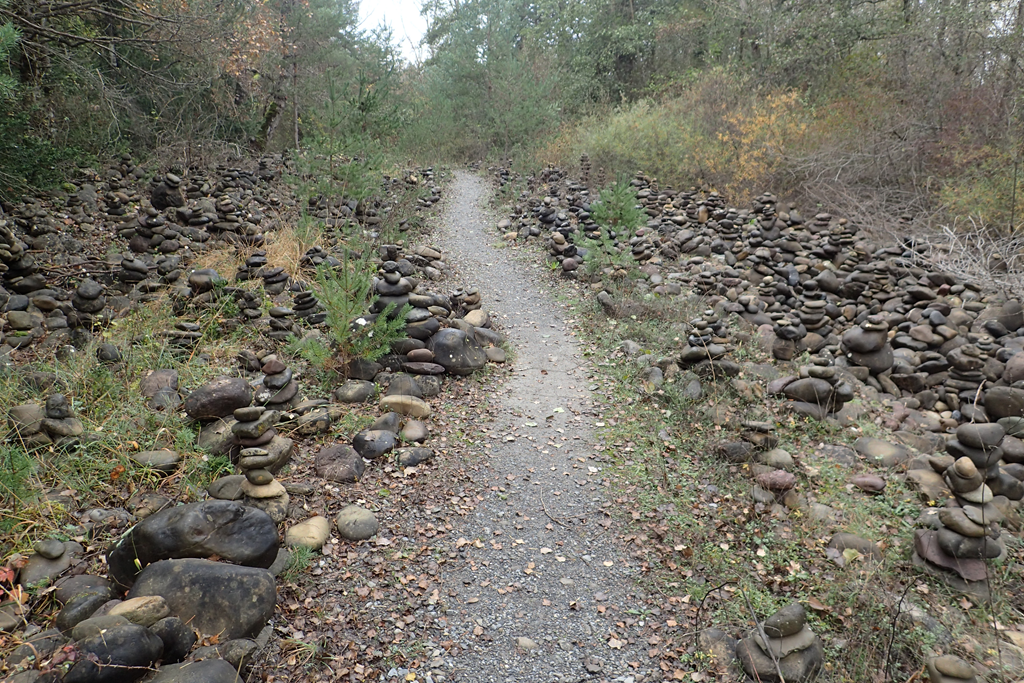 Puente la Reina de Jacaが近づいて国道からアラゴン川の方へ下ると、賽の河原のように石を積んだのが無数にある。Peregrinoたちが積んで行ったのだろう。