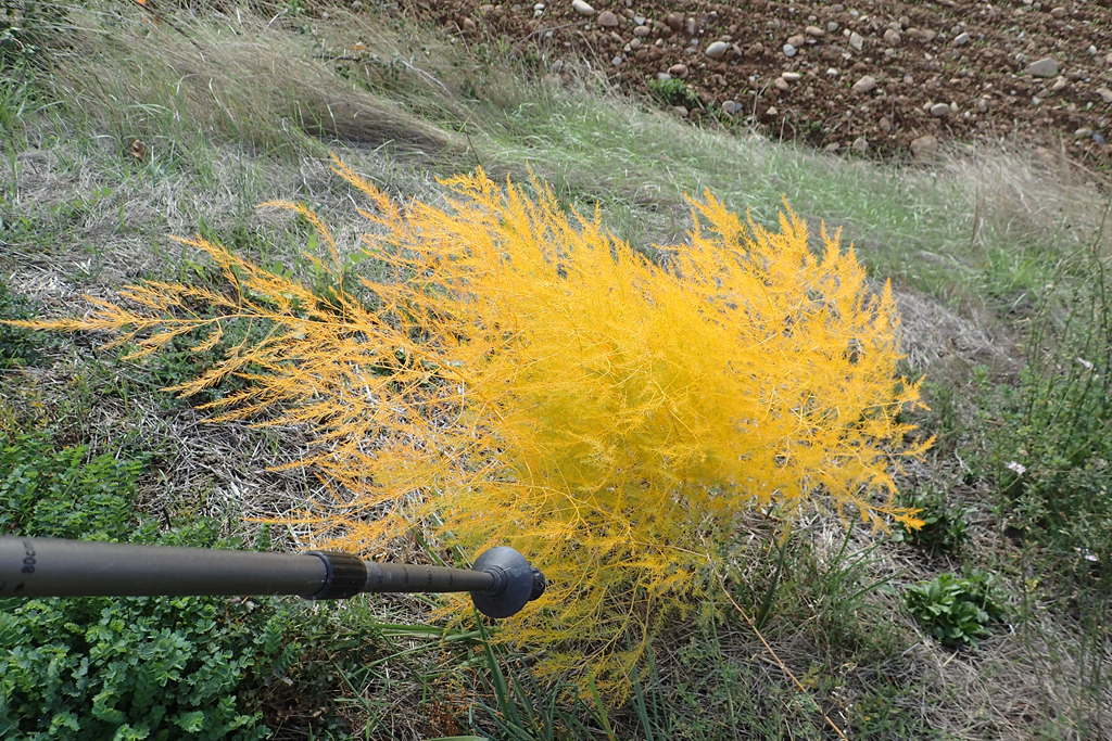 Caminoを示す矢印が国道から左にそれる道に導くが、行ってみると茨が生い茂っていてとても抜けられないので国道に引き返す。