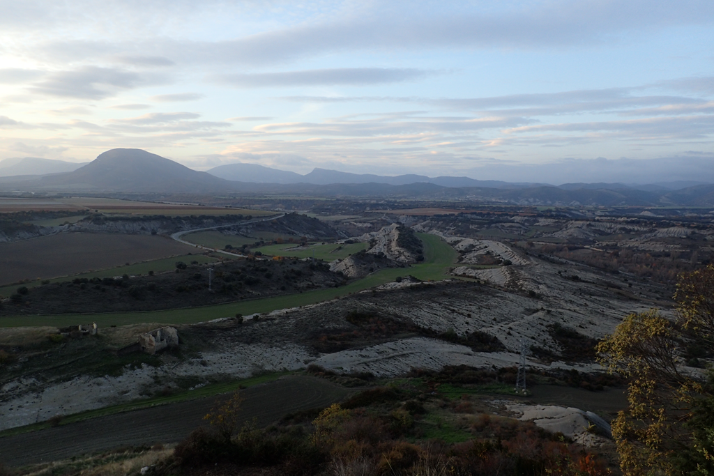 町の反対側から見ると、アラゴン川が運んできて堆積したのか、灰色の、雨が降るとねちょねちょになって私たちを苦しめる土が丘のように連なっている。