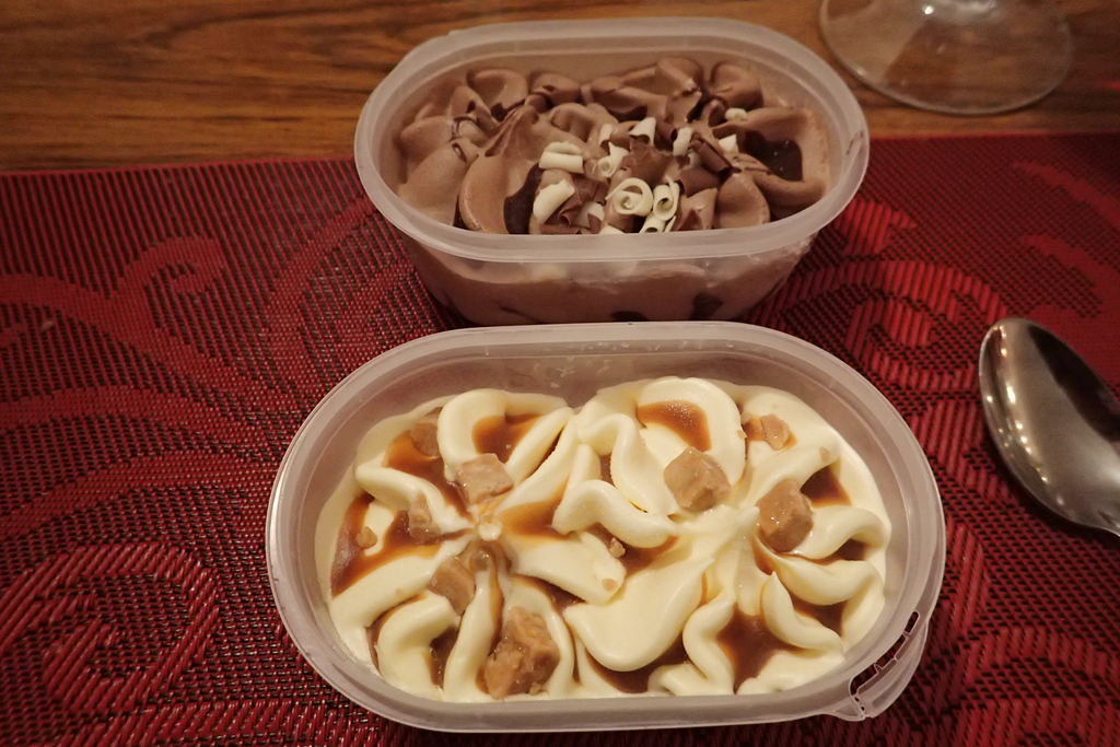 デザートはチョコレートアイスクリームとバニラアイスクリーム。