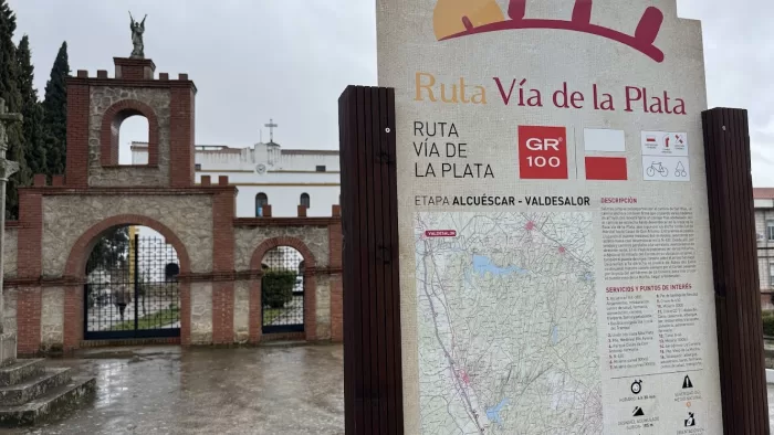 https://dosperegrinos.net/2025/03/12/sexta-peregrinacion-2110-3-2025-2//images/2025/05/image-180-700x394.webp/images/2025/05/image-180-150x150.webp銀の道 Camino de la PlataCamino,Camino de la Plata,Santiago,サンティアゴ,巡礼動画 Alcuéscar to Aldea del Cano いつも通り7時起床。外は濃い霧。雨も降っている模様。食堂に行ってみるが自販機に食べたくなるようなものはない。持参のものを少し食べ、薬を服用してから出発。 アルベルゲだが受付には誰もいないので、昨日言われた通りにキーボックスに鍵を入れて出る。雨。 途中の小さなスーパーで水とバナナを購入。 昨日の昼食をとった店で朝食。Tostadaなどいつも通り。スーパーで買った水を水筒に移し替える。 この町は結構豊かなようだ。公園があり、立派な体育施設があり、随所に置かれたベンチは町の名前の入ったもの。さらに通りの真ん中に噴水。 町を出る直前で通りがかりの老人がCaminoの方向を教えてくれる。交差点を渡る場所も指示してくれ、私たちが渡ると彼も渡ってきて、すぐ横の建物を指差して、自分はここでこれから眠るよ、と言って入っていった。 そこは老人ホーム。雨の朝、一人で外出。Barにでも行っていたのだろうか。 町を出ると間もなく未舗装の道。道幅はあるが、水たまりが多い。 両側は牧場、牧草地、オリーブ畑、かしの木の森。水たまりに苦労させられるが、道幅いっぱいに水が流れ靴カバーが必要になる場面が2回あった。 しかも幅が広く深さも十数センチ。流れが遅いので危険は感じないが、やはり渡るのに時間がかかってしまう。しかも2度目には二人が使ったカバー4枚のうち2枚に穴が開いてしまった。昨日から合計すると5回の使用で穴。薄いビニールなので、石の上を歩いてしまったせいか、靴のアウトソールのためか。 あまりの道の悪さに辟易し、途中で道を変えて国道に出る。 もう一人のペレグリーノがすぐ前に現れ、間もなく国道と並行する様になったCaminoを進んだので、私たちもその後を追うが、やはり道がひどいので再び国道を歩こうと道を変えると、はるか前方をおそらく先のペレグリーノだろう人が歩いているのが見える。 延々と直線が続き、ただ丘の起伏による上下だけが変化という舗装道路で、歩いていて疲れと単調さで眠くなる。風邪気味で調子も良くない。 今日の目的地、Aldea del Canoに着いたのは14時半。宿の方に向かい、宿のすぐそばのRestaurante La Posada & Giraldoに入って昼食。 Menú del Dïaで一皿目はCocidoとSopa de Mariscos。 二皿目はPanchetaとChorizoでいずれも目玉焼き付き。赤ワインとミネラルウォータ1.5l。美味しかった。それにしても注文をとりに来た時にCamareroはメモを見ながらメニューを読み上げるのだが、品数の多いこと。店は小さく客も少ないのに、あんなに多くの料理を用意して採算は合うのだろうか。 食事を終える前に宿にメールで到着予定時刻を知らせる。宿に行くと扉は閉まっている。ドアをノックすると少ししてSeñoraが開けてくれる。入ったところで濡れた傘やバックパックカバーを外してハンガーにかけるように言われる。小さな食堂があって朝はパンや飲み物を自由に使う様にとのこと。今夜はスペイン人2人、フランス人2人、そして私たち2人の合計6人だそうだ。 建物も部屋も非常に古く、ドアなどの建て付けも悪い。しかしスチーム暖房のラジエターが部屋の入口脇、ベッド横、トイレ・シャワー室に設置されていて、暖房が入っているので、今夜は大丈夫だろう。 今日はほとんど一日中雨で、短時間止むことがある程度。気温もあまり上がらず、暑いと感じる時間もなく、ダウンを脱ぎたくなることもなかった。 体調が良くないので、さっさとシャワーを使ってベッドに入ることにする。ところがシャワーは途中でお湯がなくなる。見上げると電気温水器のタンクがドアの上にあり、容量は小さい。かろうじて完全な水になる前に何とか石鹸分を流し終えた。配偶者はしばらくシャワーを使えない。私はすぐにベッドに。18時前には眠ってしまったようだ。22時ごろに一度起きて持参の干しぶどうとチョコレートを少し食べ、薬を飲んでまたすぐに眠った。Andrés andres@nifty.comAdministratorDos Peregrinos