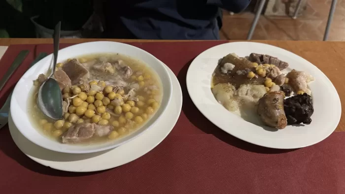 Menú del Dïaで一皿目はCocidoとSopa de Mariscos。