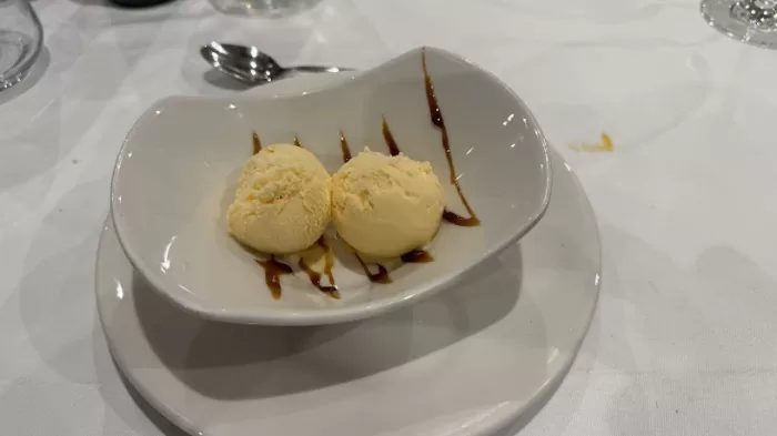 デザートはTARTA DE QUESO CON FRUTOS ROJOSとHELADOS VARIADOS。どれも美味しくサービスも良かった。
