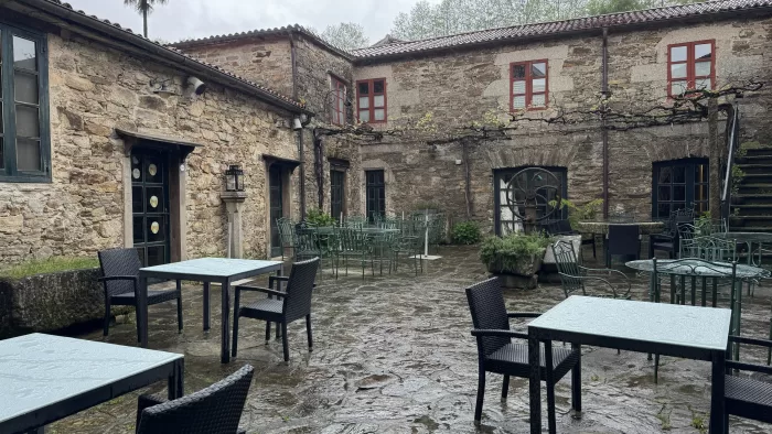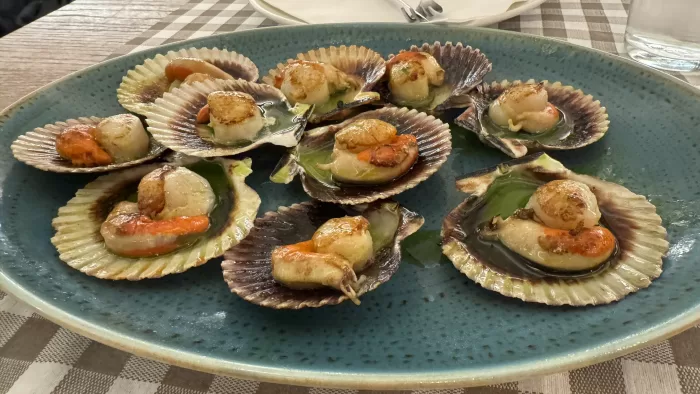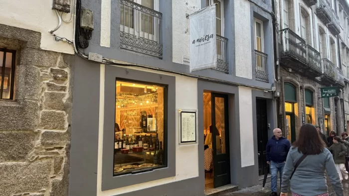 20時ごろに夕食に出かける。Catedralから続くレストランや土産店が並んだ狭い道にあるA Noiesa Casa de Comidas。20時からとGoogleマップには書かれているが、20時に入店した時にはもう食べ終えようとしている客もいる。私たちもすぐにテーブルにつけたので問題ないが。飲み物は白ワインとAgua Con gas。