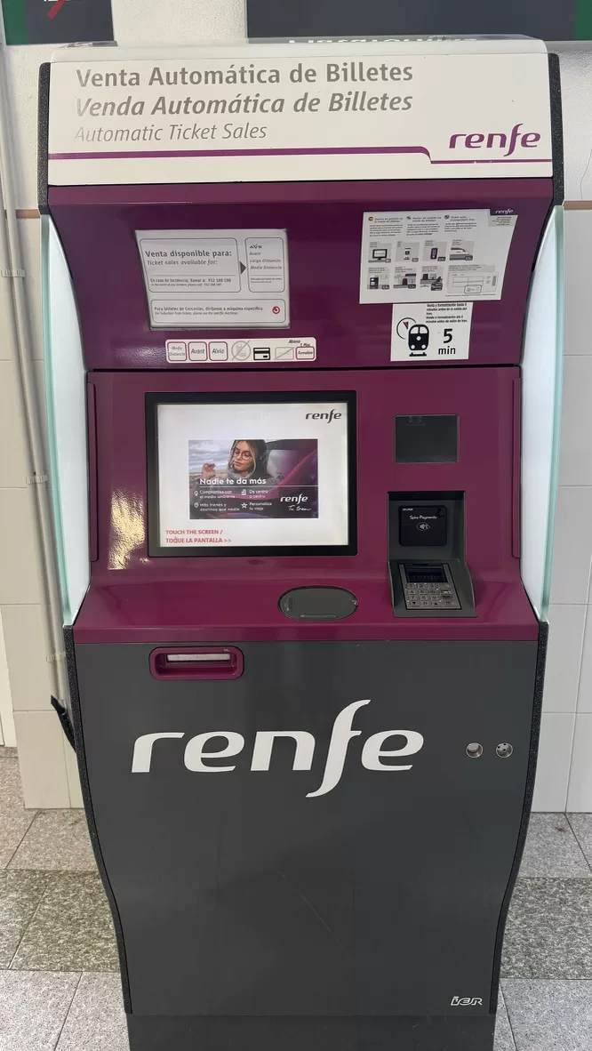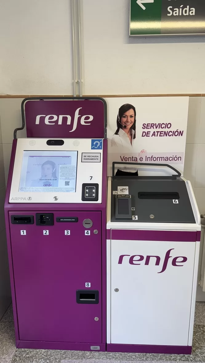 窓口は営業しておらず、自動券売機があるだけ。Ourense行きの切符を買おうとするが、最後のクレジットカードでの支払いの段階で中断してしまう。2度やってみるが同じ結果。男女二人連れがやはり切符を買いに来ていて、別の券販機なら買えると言うので、そちらで試してみる。