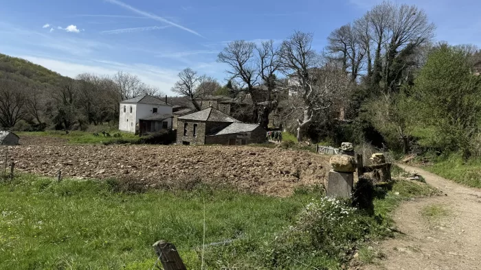 https://dosperegrinos.net/?p=20491/images/2025/04/11841D65-D1FD-43E1-981B-D3BE10CF17DB_1_105_c-700x394.webp/images/2025/04/11841D65-D1FD-43E1-981B-D3BE10CF17DB_1_105_c-150x150.webp銀の道 Camino de la PlataCamino,Camino de la Plata,Santiago,サンティアゴ,巡礼動画 O Cebreiro ~Triacastela Sarria -Ourense 7時起床。6時半ごろには他の部屋から話し声や音が聞こえ始め、7時過ぎには出発してしまった模様。私たちは8時に朝食をとりに向かいのBar、10年前に泊まったところだが、に入る。店内の様子はあまり記憶にないが、Barから上階の客室に行くには一度外に出なければならないという奇妙な仕組みはそのままだった。何人かの泊まり客が降りて来ては外に出、あらためて他の入口からBarに入って来る。 朝食はいつも通りTostada、Café con leche、Té con leche、Zumo de naranja。いつもと違うのはTostadaを二人分注文したが、一皿に二人分をまとめて出されたこと。外を見ていると、朝焼けがまだ消えない時刻にここに上ってくるPeregrinoが二人いた。昨日、昼食をとったところの宿に泊まったのだろう。 9時前に出発。今日は10年前に配偶者が体調を再び悪化させて歩くのを断念し、タクシーでTriacastelaまで移動した区間を、あらためて歩いてCamino Francésの完歩を完成しようという予定。ただしTriacastelaから先に進むバスの時刻があるので、のんびり歩くわけにはいかない。 O Cebreiroを出ると、10年前の私が一人で歩いた時にも思ったことだが、下り坂になると思ったのがしばらくは上り坂なのだ。さらに上ったり下ったりで標高は1300mあたりからなかなか下がらない。路面は砂利混じりの土の道で、歩きやすいし雨でも苦労は少なさそう。今日は晴れていて、水たまりの心配は全くない。朝からダウンなしで歩くが、少々冷んやりするもののダウンを出そうという気にはならない程度。 1時間ほどでPeregrinoが風に向かって進んでいる像に到着。10年前は一人だったので、そこにいたPeregrinoに頼んでシャッターを押してもらったが、今回は二人で互いに撮し合う。この像を横目で見ながら通過する人も多い。 この辺りから見られる風景は、彼方まで続く山々。しかし間には点々と集落があり、もちろんその間を歩いて移動するのは大変だが、車であれば苦もない。また牧場や牧草地が綺麗に区切られてパッチワークのような情景を呈している。 道端には山野草が小さな春の花を咲かせている。これまでCaminoを歩いたのは秋ばかりだったので、花々に彩られた道は一層新鮮だ。 徐々に下り気味になった道が、突然急な上り坂になる。短い区間だが急坂で十数メートル進んでは一息入れの繰り返しになる。そんな坂を80歳を超えているのは確かと思われる女性が、私たちの後で上って来た。細く筋肉もあまりなさそうで、上り口で追い越した時には本当に上れるだろうかと訝しんだのだが。 坂を上り切ったところにBar。10年前にも休んだところだが、すっかり綺麗になっている。Barの名は以前はPoioだった思うが、今は向かいの店がPoioとなっている。私の記憶違いだろうか。 そこからしばらくは道路沿いのCaminoで下り坂が続き楽。しかし道路から離れてからは急な下り坂で、常にブレーキをかけながら下ることになり、疲れる上につま先が痛くなる。普段使わない筋肉を使い続けるようで、筋肉痛が心配だ。 この辺りは5kmも行かないうちに集落があり、そこにはいくつもの宿とBarがある。Camino de la Plataでは一日歩いても途中にBarどころか集落さえもなかったことを思うと、Camino Francésは、坂の上り下りを別にすれば、楽な道だと感じる。他のPeregrinoがBarなどに入ったり、早々と宿に入ったりする中で、私たちは先を急ぐ。さらにTriacastelaが近づくと、何人もを追い越す。いつもは追い抜かれてばかりなのだが。 Triacastelaに着いて少し進んだところに10年前に泊まった宿。 レセプションでバス停の場所を確認しようと思ったが、誰もいないので諦める。中の様子は記憶の通り。10年前、タクシーで着いた配偶者はロビーで日記を書きながら待っていた。 宿の少し先には同じ経営のレストランがあり、前にはたくさんの人が集まっている。昼食を終える時間なので、出て来た人たちなのだろうか。 Sarria行きのバス停に行く。向かいにちょうど道路整備の人らしき男がいたので、Sarria行きのバス停はどこかと聞くと、そこだと道の向かいを指す。時刻を聞くとそれは知らないとのこと。バス停には先客が二人いたので、確かめてみるとそこがSarria行きのバス停で、自分たちも行くところで発車は15時半だと言う。私の情報では15時50分なのだが、時刻の違いは大した問題ではない。まもなくもう二人のPeregrinoがやってきてバスを待つ。 バスを待ちながら近くのBarで何か食べようと思っていたが、通ってきた宿のある道と違い、この辺りの店は閉まっているところがほとんどで、Barはすべて休店。 定刻の15時50分の少し前にバスがやってくる。バスは見覚えのある風景に中をSamosの町を通過。修道院や日本人女性Peregrinoと知り合った店を見ながら進む