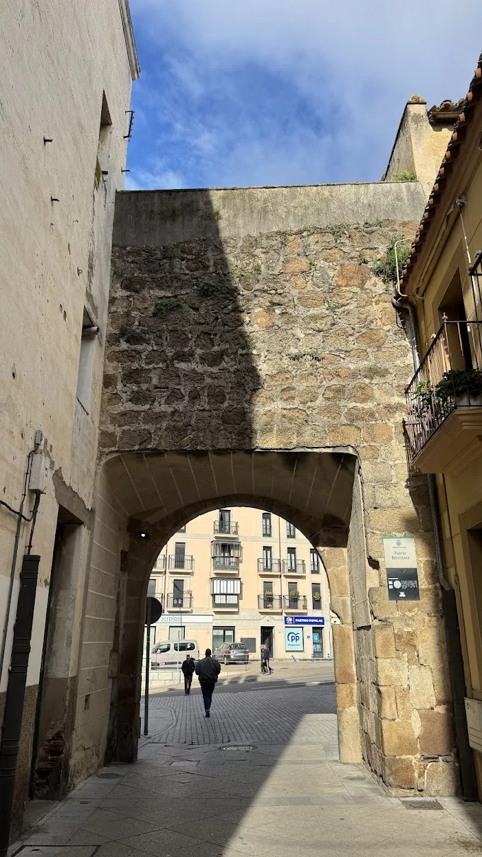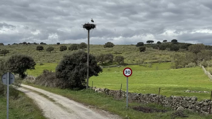 https://dosperegrinos.net/?p=21195/images/2025/05/image-325-700x394.webp/images/2025/05/image-325-150x150.webp銀の道 Camino de la PlataCamino,Camino de la Plata,Santiago,サンティアゴ,巡礼動画 Plasencia〜Oliva de Plasencia 7時起床。夜中に今日の宿からメール。自分のところでも小さなスーパーを持っているので、食材の心配は必要ないとのこと。自炊にはなるが、プラセンシアから食材を担いで行く必要がなくなって一安心。 ホテルの朝食はビュッフェで、朝から歩くことを考えるとそんなに量は食べられないので、近所のBar行く。1分とかからないところ。小さな店で、カウンター席が数席、小さな2人用テーブルが3台。カウンターで食べる。 ChurrosとTostada、ColacaoとTè con lecheとZumo de Naranja。Churrosは作り置きにしては良い方だが、やはり揚げたてにすべきだった。 ホテルに戻りチェックアウト。朝方まで降っていたようだが、雨は上がり予報も曇り。朝食に出た時の様子で、寒くはなさそうなので、ダウンなしで出発することに。 9時40分チェックアウト。 街中を抜け、昨日最初に見かけた城門から出て旧市街を後にする。 小さな街だと思っていたのが、意外に新市街が大きく、ビルやピソが立ち並ぶ。そんな中で急な上り坂が続き、ダウンを着てこなくて良かったと思う。 ロータリーを何ヶ所か通るが、一つには工場設備の一部と思われるものが設置され、もう一ヶ所には石造りのアーチが。この街はロータリーに記念物を置く趣味があるようだ。 街を出て振り返ると異様な建物が遠くに見える。巨大なビニール袋をかけたようでもあり、温室のようでもある。後刻ネットで調べてみたらPalacio de Congresos de Plasencia、コンベンションセンターだった。 国道になると走る車のスピードが上がるが、今日も通行量は少なく路肩の幅もあるので、危険は感じない。周囲は牧場だが、ちょっと変わった景色も。 丸い岩が岩の上に乗っている。押せば転げ落ちそう。地震のほとんどないところなので、いつまでも乗っかっているのかもしれない。 ふと気づくと、羊たちが散らばって草を食べている。遠いせいか、間に柵があるせいか、私たちに気付いてもじっと見つめることはしない。 高速道路を越えると国道から地方道へ入るが、道路に変化はない。向こうに今日の目的地Oliva de Plasenciaが見える。道は下り坂が続き、当然また上らなければならないと思うと嫌だが、今日は距離も短く天気も良いので、最後の上りは苦にならなかった。 赤牛が草を食んでいて、何頭かは気づいてこちらを見つめる。 電信柱のてっぺんにコウノトリが巣を作り、つがいで卵を温めているらしい様子。 ところが後で写真を拡大してみると、電柱ではなくコウノトリの営巣用に立てたポールのようだった。 町に到着。人通りはほとんどなく静まっている小さな広場に、老夫婦の人形が腰掛けていた。 宿に着いて、当然扉は閉まっているので電話すると、すぐに行くとのこと。数件先で物音がし、女性が扉に鍵をかけてこちらにやってくるのが見えた。宿の人だった。部屋に案内してくれ、食事の心配をしていた人だよね、と確かめると、彼女が出てきた家に私たちを連れて行った。 そこが小さな小さなスーパー。昼夕食の食材を買う。パン、スープ、ハムなど。 部屋に戻り、共用キッチンで用意して、共用食堂で食べる。食堂の一角はサロンになっていて、ストーブが焚かれている。窓の外にこの宿に入るらしいペレグリーノ夫婦らしき姿が見える。やがて宿の人がやって来て入室。 食事を終えて片付けをしていると、夫婦ペレグリーノが代わりに食事の準備を始める。オランダ人でCamino de la Plataを歩いているとのこと。 部屋に戻り明日の宿の予約。昼寝。起きてシャワー、日記。 ここで事件発生。突然、トイレの水が出なくなったのだ。さっきまで出ていたのに。下階で何かの工事をしていたので、そのせいかもしれないと思い下に行ってみたが、もう終わって帰ってしまった後だった。宿の人にメール。対処の仕方を返事してきたが、直らない。工事の人が元栓を閉めたのだと思うのだが。洗面やシャワーは使える。宿の人は配管工事屋に電話したが今日はもう遅いから無理だろうと言って、下階のトイレを使えるようにしてくれた。シャワーなどは自室のが使えるので、大きな支障はないか。 夕食も買ってきた食材を自炊。オランダ人の女性の方と少し話す。スペイン語で大丈夫だとのこと。アムステルダムの人だと言うので、江戸時代のオランダとの交流を話すが、出島を「コロニア(植民地)」と言うのには少し面食らう。 食後は部屋で日記。 今日は雨には降られなかったが、冷たい風が強く吹いて、歩いている時も手袋を離せなかった。Andrés andres@nifty.comAdministratorDos Peregrinos