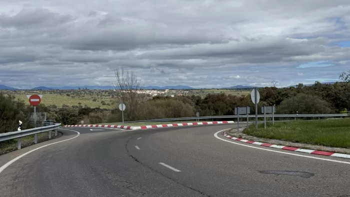 高速道路を越えると国道から地方道へ入るが、道路に変化はない。向こうに今日の目的地Oliva de Plasenciaが見える。道は下り坂が続き、当然また上らなければならないと思うと嫌だが、今日は距離も短く天気も良いので、最後の上りは苦にならなかった。