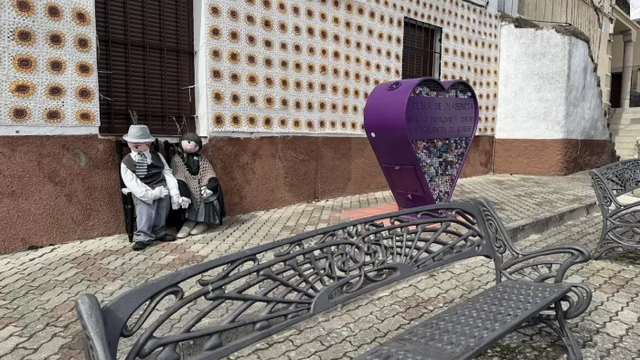 町に到着。人通りはほとんどなく静まっている小さな広場に、老夫婦の人形が腰掛けていた。