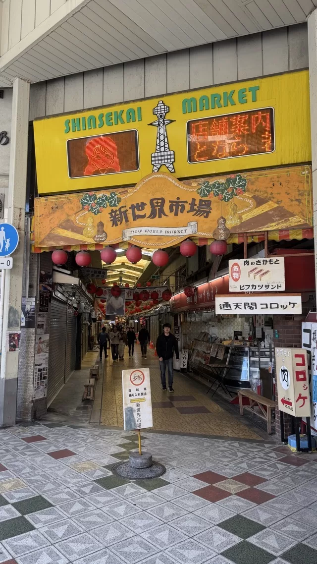 通天閣通りから斜めに逸れる新世界市場も通ってみたが、昼前だからか閉まっている店が多く、本来の様子は見られなかった。