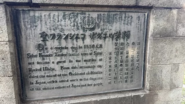 付近にザビエルが招かれて泊まっていた屋敷があったので、公園内にその旨を記した碑がある。