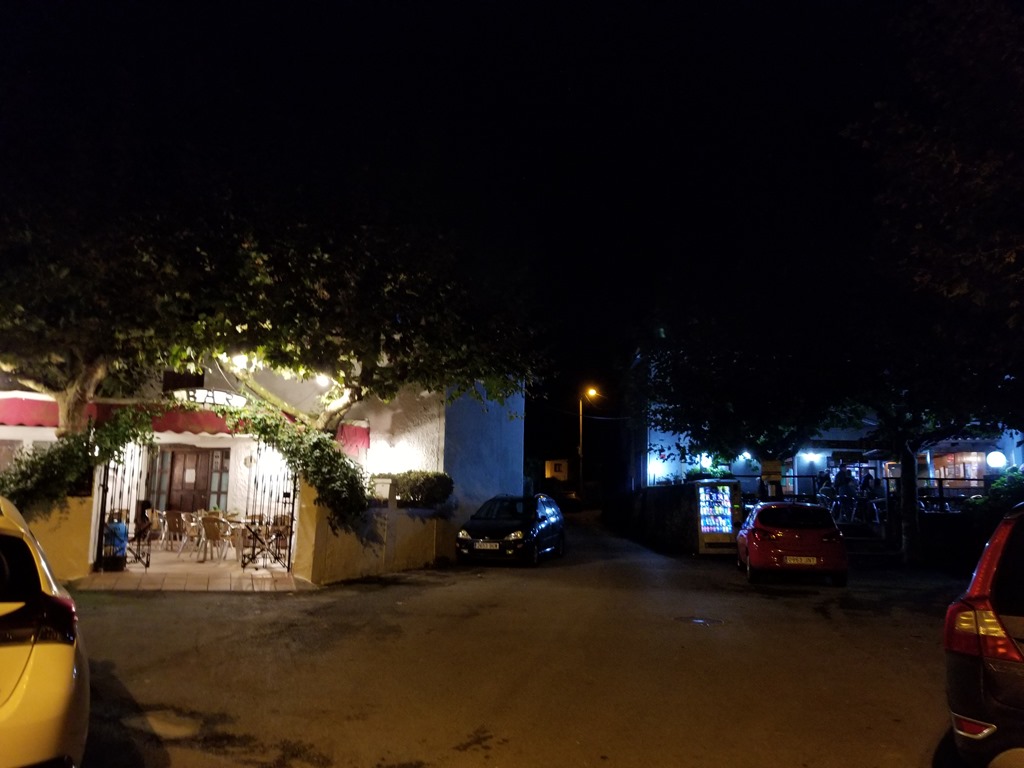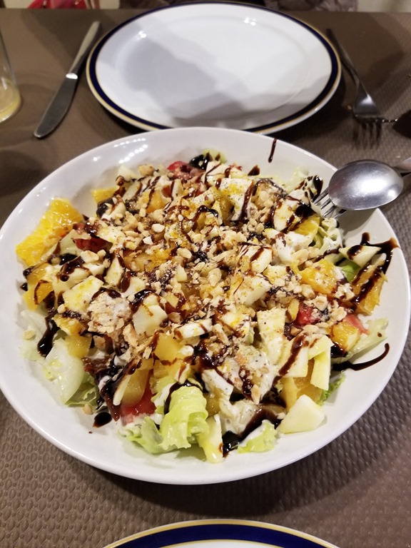 レストランはホテルの先の広場に2軒あるとのことなので、20時になって出かける。もう肌寒い。確かに2軒あり右側の店には客が全くいないので左側のに入る。やはりアラカルトだけ。