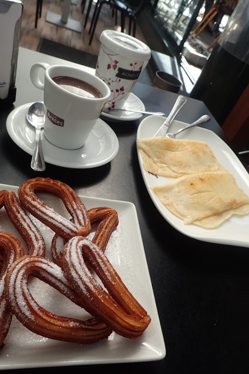 町の中心に入ったところでCafeteríaで休憩。Churro y Chocolate, Crepe, Té。Santanderでもだったが、Chocolateがどろりとした濃いものがない。