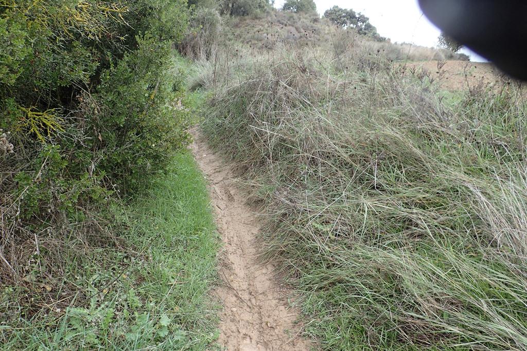 このまま舗装道路が続くのかと思っていたら、土の道になり、さらには山道になってしまう。細く急な上りであるだけでなく、泥道で避けようもない泥だらけの部分を通ることになる。おかげで靴底に泥が貼りつき、歩きづらい。オフロードバイクが走った跡があり、バイクのせいで泥がひどくなっているところもある。ようやく舗装道路に出たところで、今日の目的地Ceveraまで3㎞。山道で歩くスピードが落ち、Ceveraの街の麓に着いたのは予定より30分ほど遅れた。2時半だった。