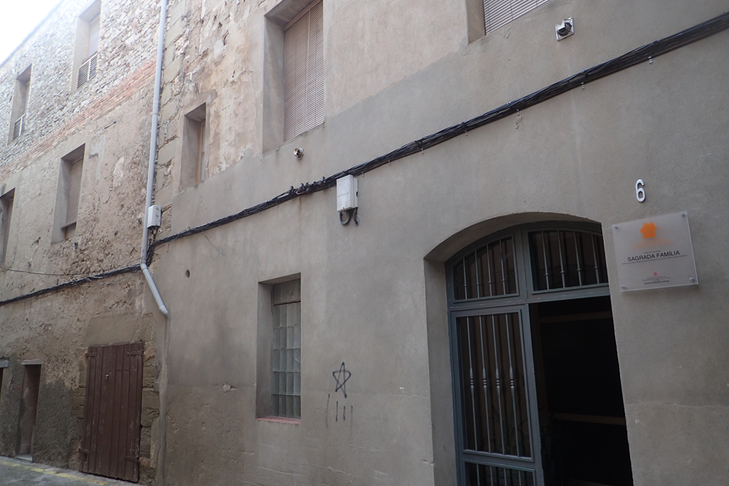 地図にはないので、通りかかった男性に今日の宿La Residencia de la Sagrada Famíliaの場所を聞いて進む。Calle Mayor沿いにあるとのことだったが、そこにはすぐ先の路地に入口があるとの貼り紙がしてあるだけ。
