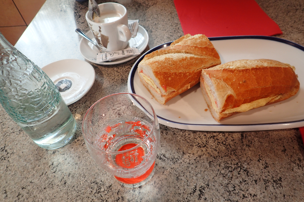 今日の道筋にはほかにもう町も村もないので、少し早いがここで軽食にする。